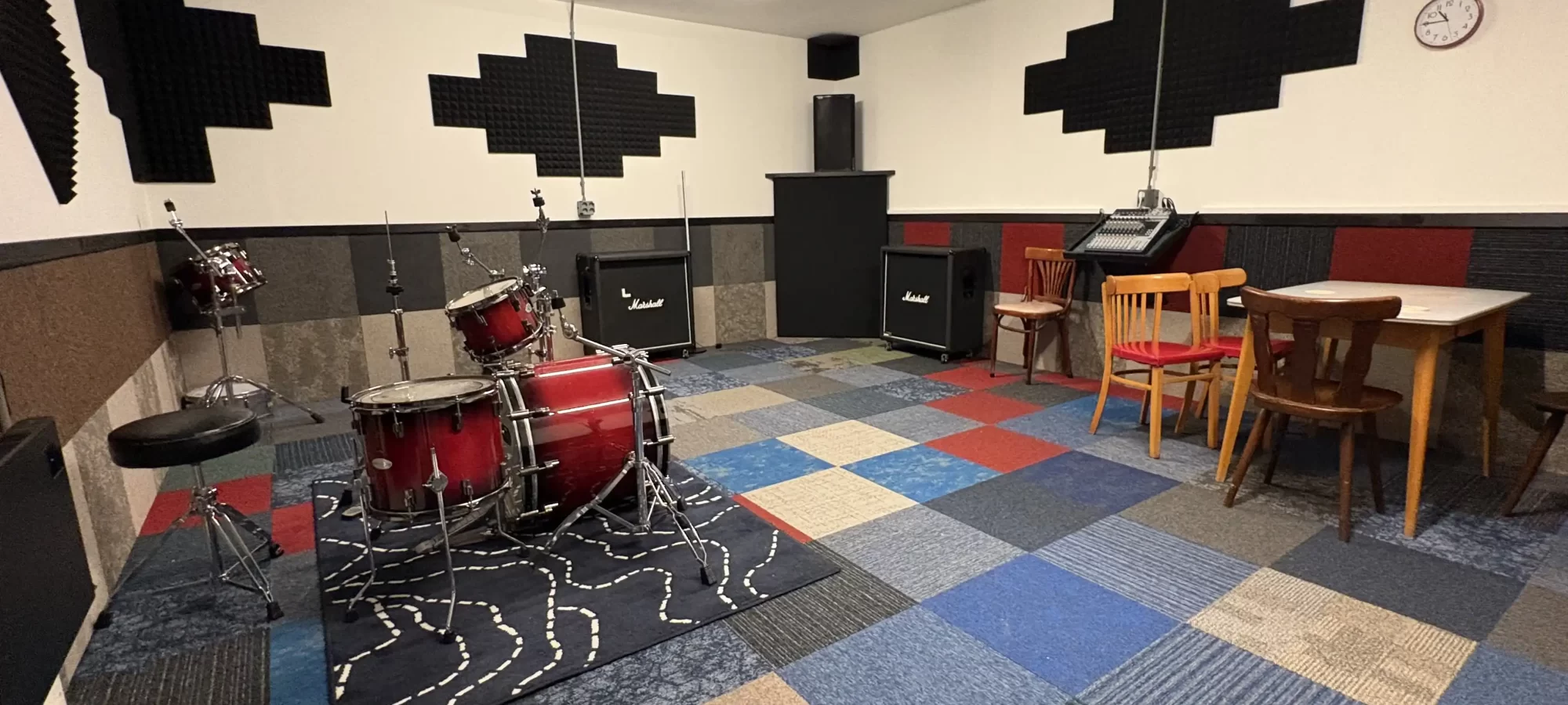 Voor lokaal 1,2 en 4 zijn drumstellen beschikbaar. De blokken worden ook los verhuurd. Reserveren minimaal een week van te voren via: verhuur@oefenbunker.com